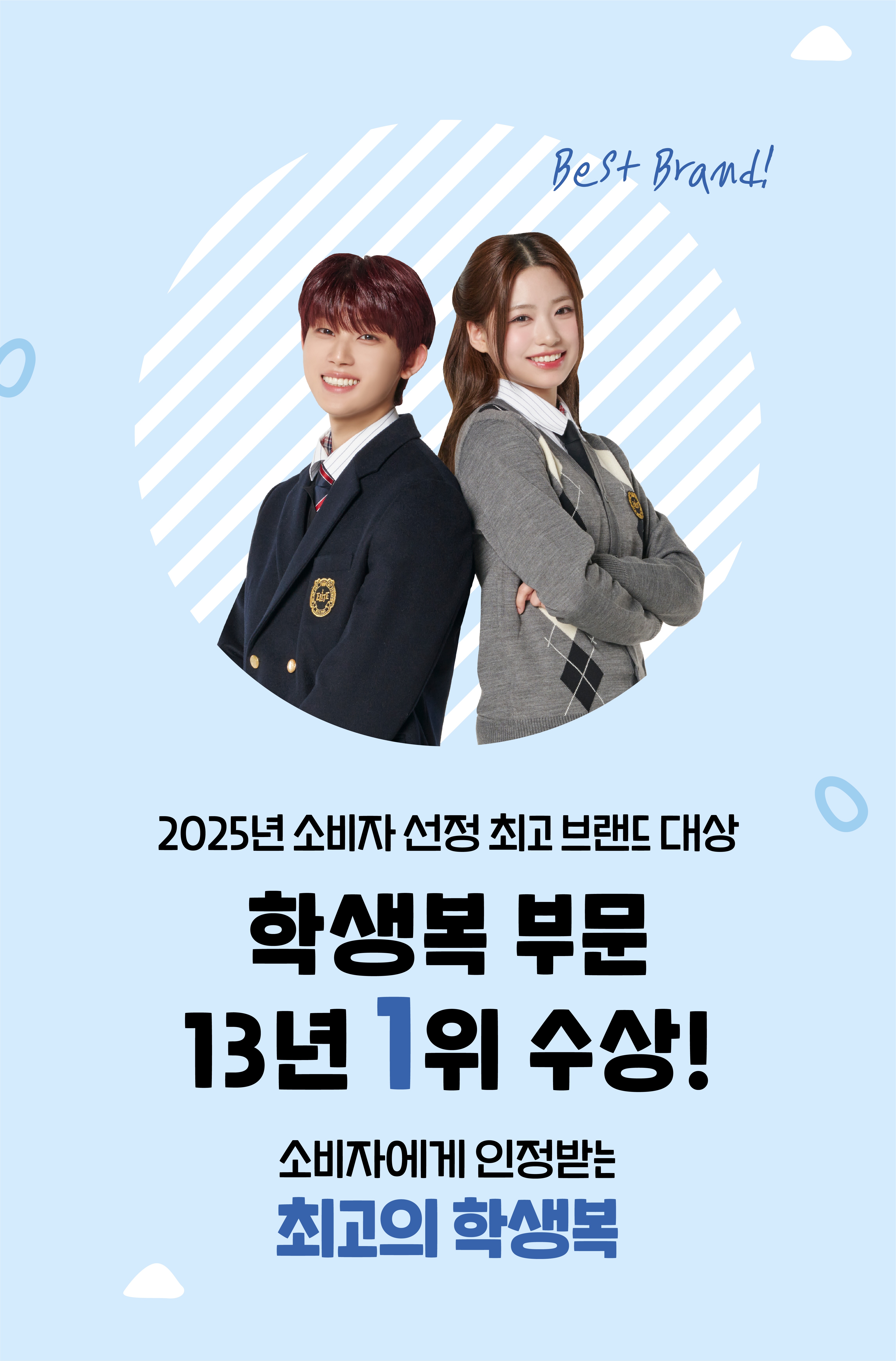 학생복의 대명사로 자리매김한 50여년의 노하우와 자부심으로 더 좋은 제품을 연구하고 혁신하여 대한민국 학생복의 미래를 이끌어 가는 엘리트에서 품목별 호침에 맞는 사이즈 스펙을 검토한 체형 분석 시스템을 도입하여 "편한 교복"의 트렌드를 반영하였습니다.